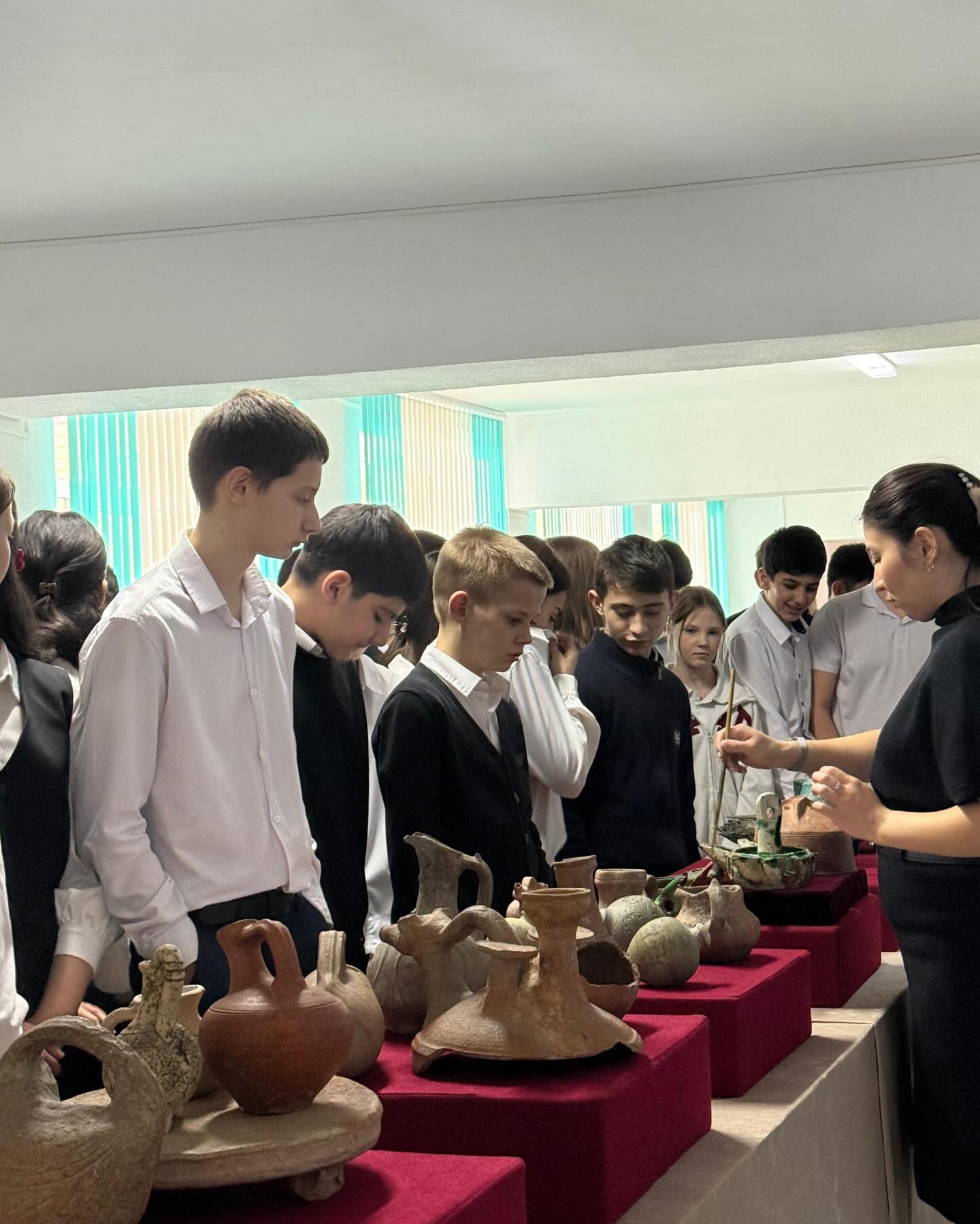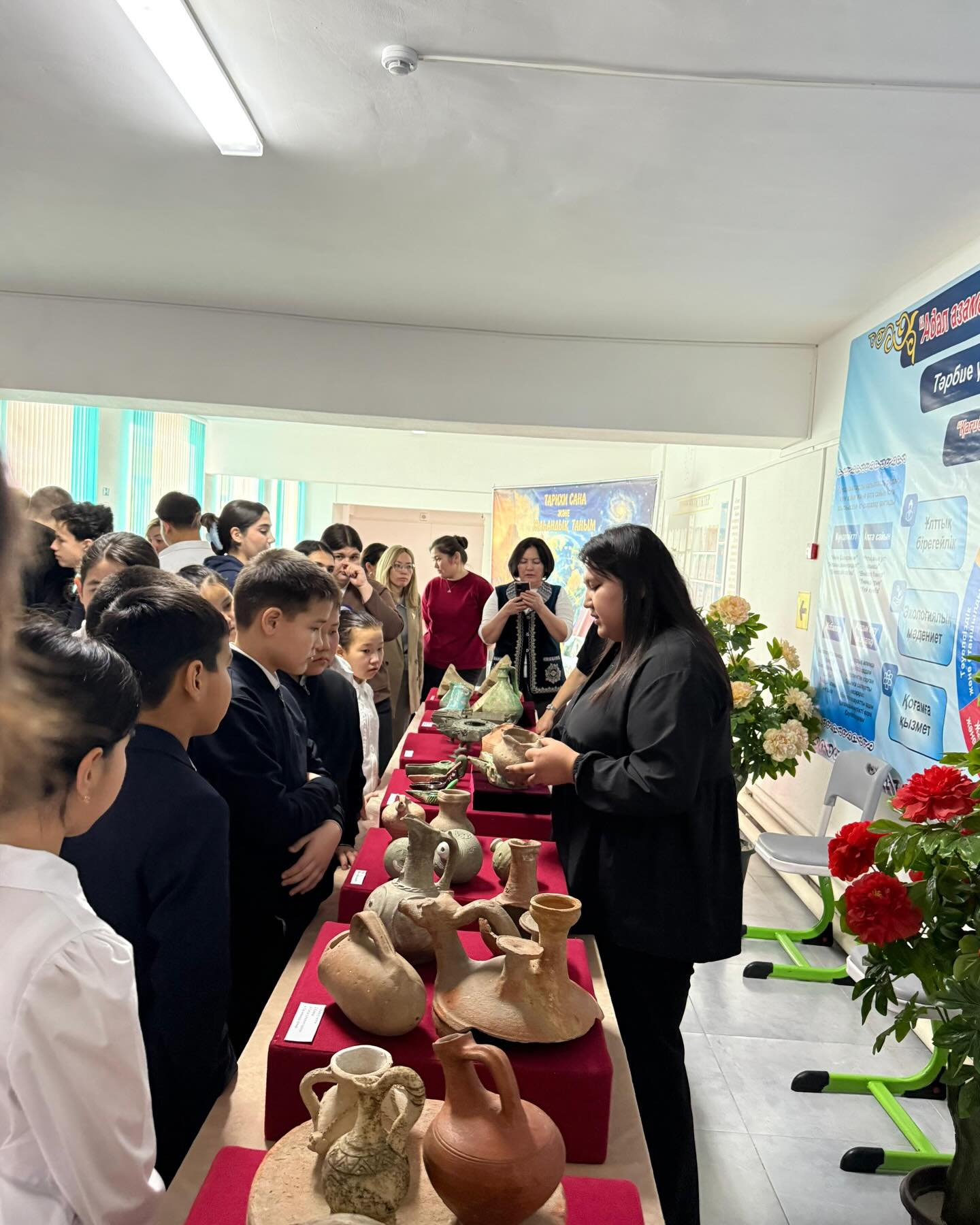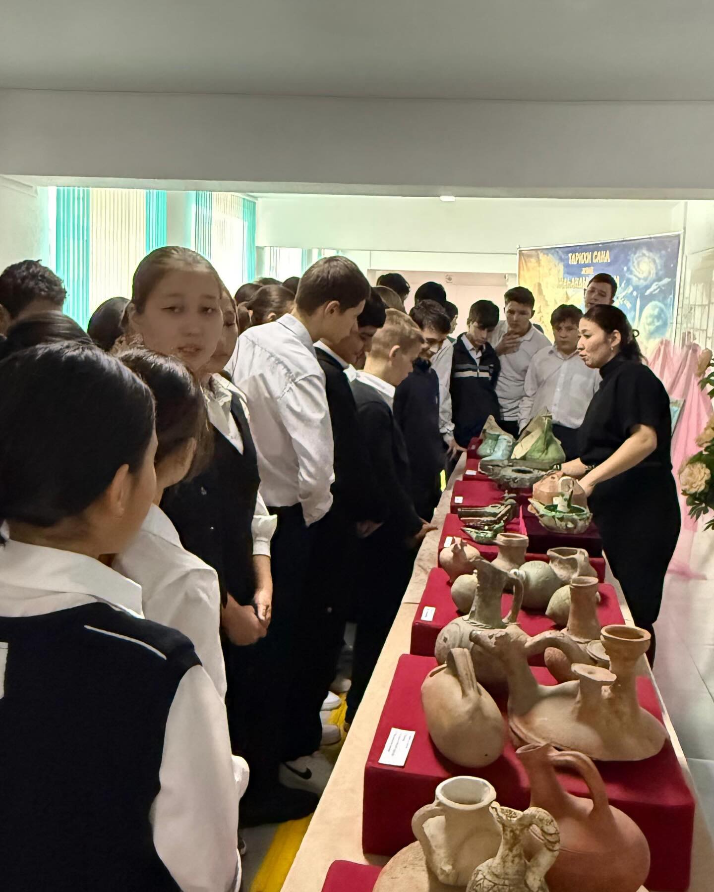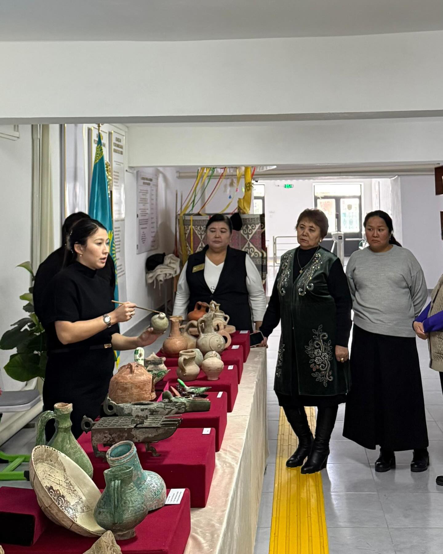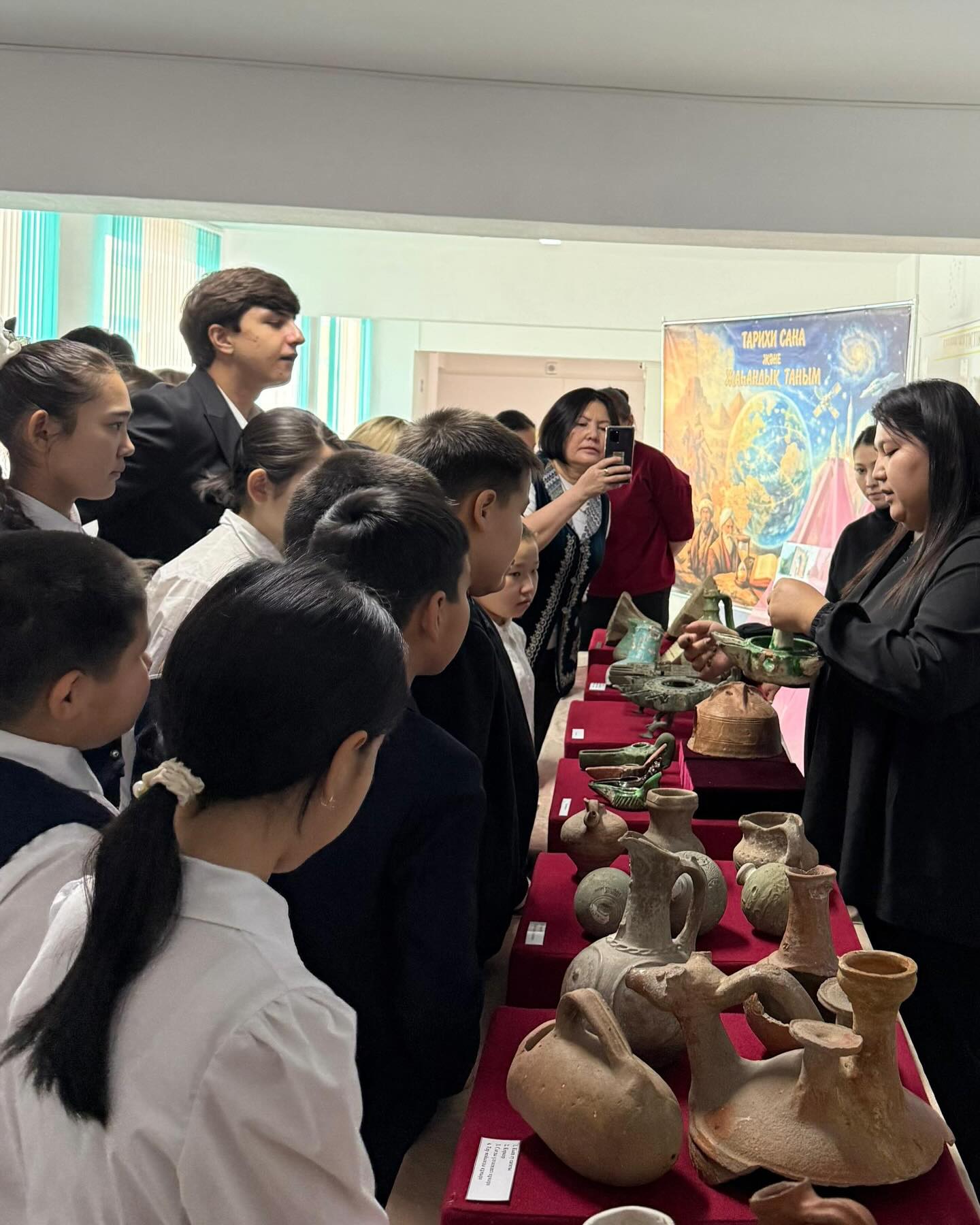 Көрмеде Тараз өңірінің тарихын айқындайтын жәдігерлер ұсынылды. Ұсынылған тарихи бұйымдар арқылы білім алушылар көне Тараздың өткені, мәдени мұрасы және тарихи маңызы жөнінде мағлұмат алды.