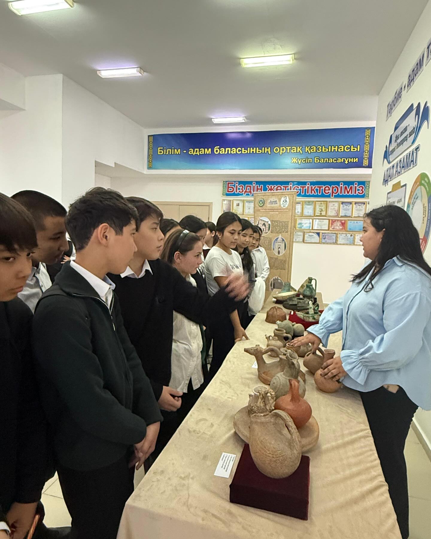 Көрмені тамашалау барысында оқушылар әрбір жәдігердің тарихы, жасалу тәсілі мен қолданылу мақсаты туралы мол мағлұмат алып, ортағасырлық Тараз қаласының мәдениетімен жақын танысты. Бұл шара олардың тарих пәніне деген қызығушылығын арттырып, отансүйгіштік пен ұлттық мұраға деген құрмет сезімін қалыптастыруға ықпал етті.
