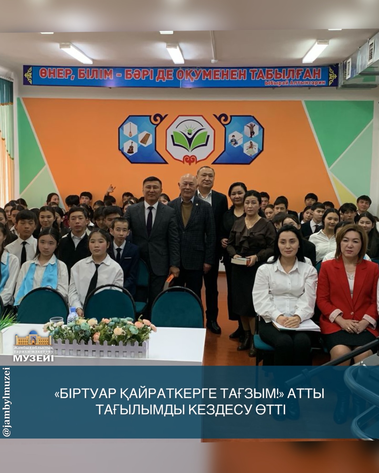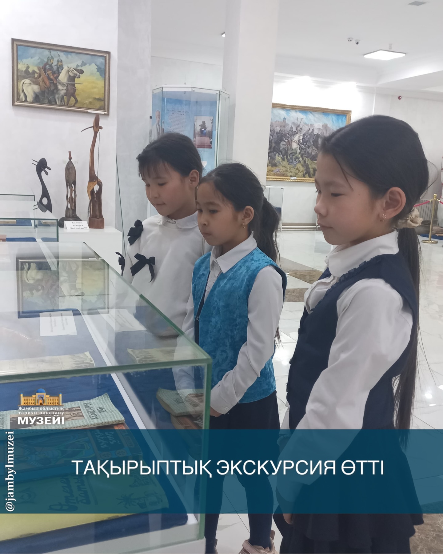 Жамбыл облыстық тарихи-өлкетану музейінде «Тарихи мұраны сақтау – біздің борышымыз» атты тақырыпта Байзақ ауданы Абай атындағы орта мектеп оқушыларына арналған танымдық экскурсия ұйымдастырды.