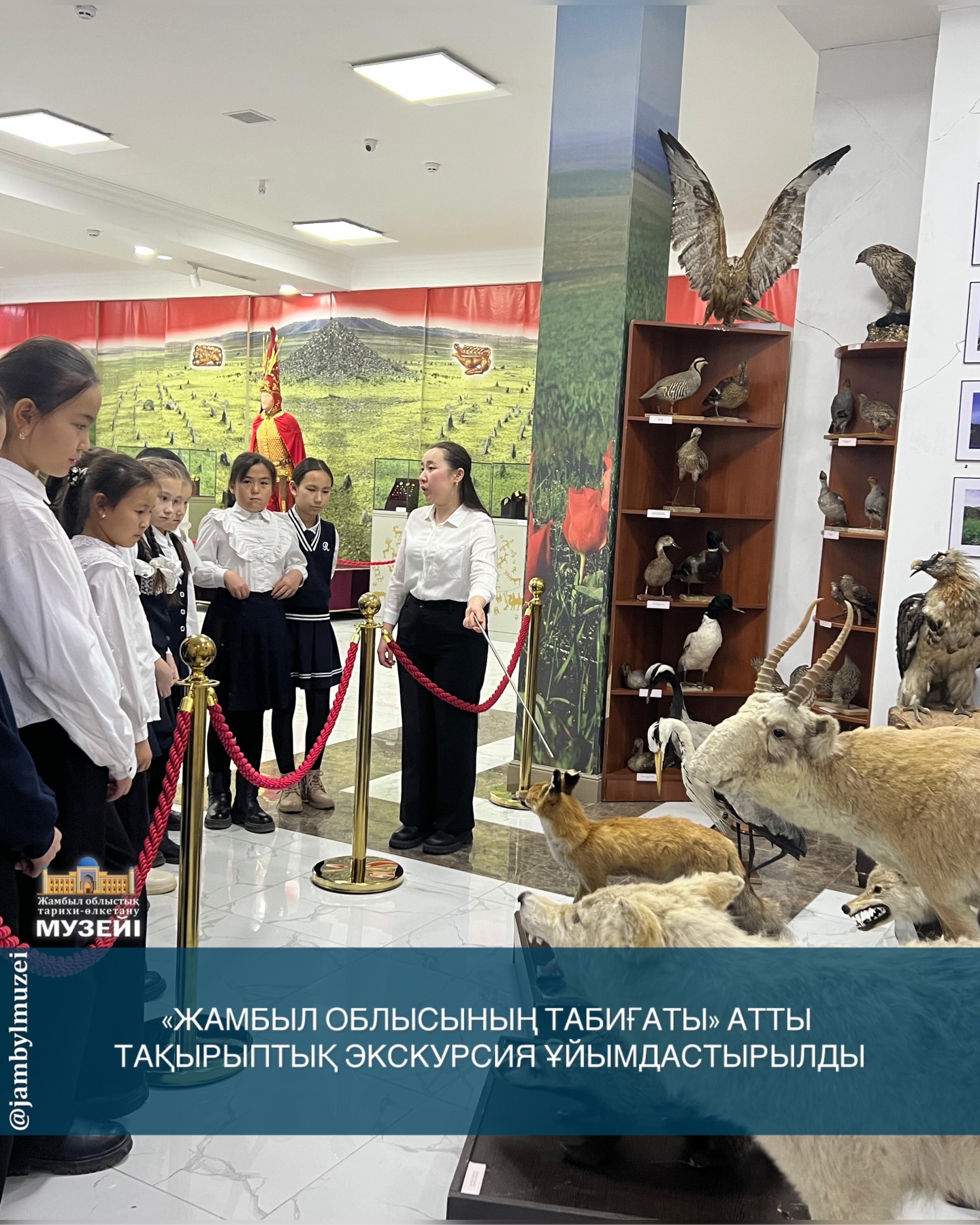 «Таза Қазақстан» экологиялық мәдениетін дамыту аясында Жамбыл облыстық тарихи-өлкетану музейі 1-экспозициялық залында «Жамбыл облысының табиғаты» атты тақырыптық экскурсия ұйымдастырылды.