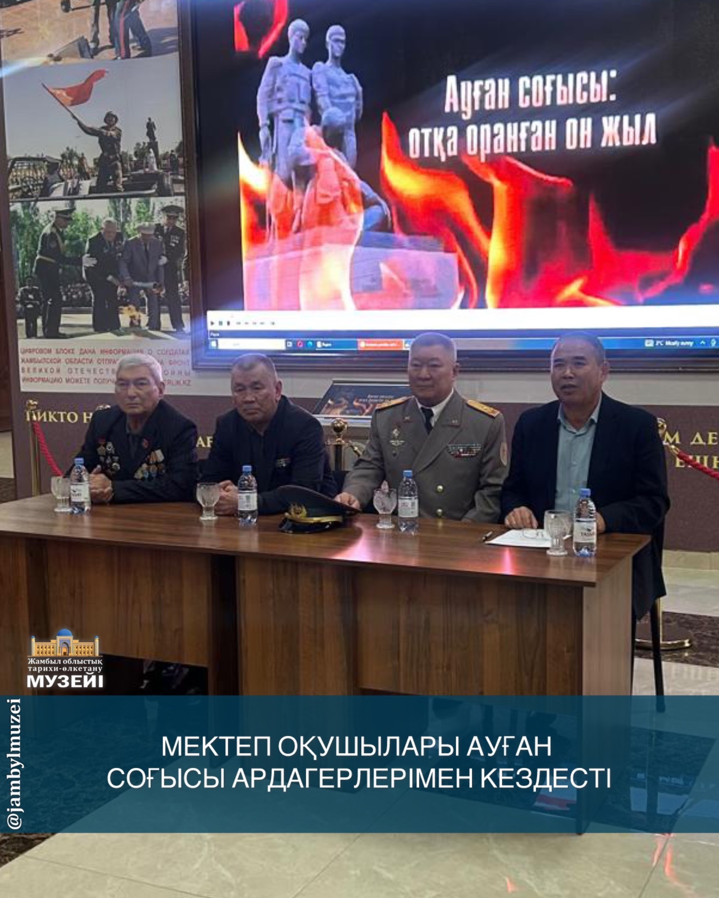 Жамбыл облыстық тарихи-өлкетану музейіне қарасты «Даңқ» залы мен «Бауыржан Момышұлы» музейінде өскелең ұрпаққа «Ауғанның отты жылдары» атты іс-шара өткізілді. Отан сүйгіштік рух пен тарихи тағылым сыйлаған мазмұнды кездесу болды.