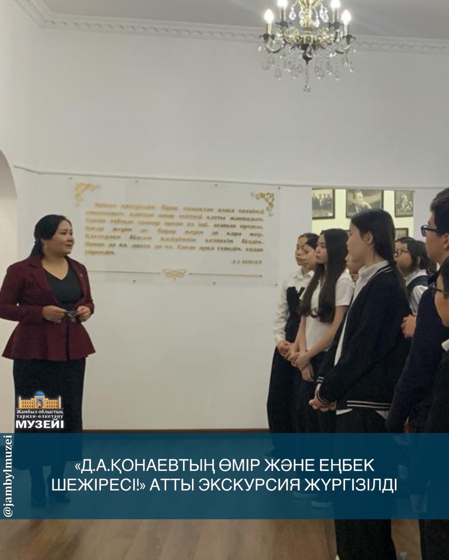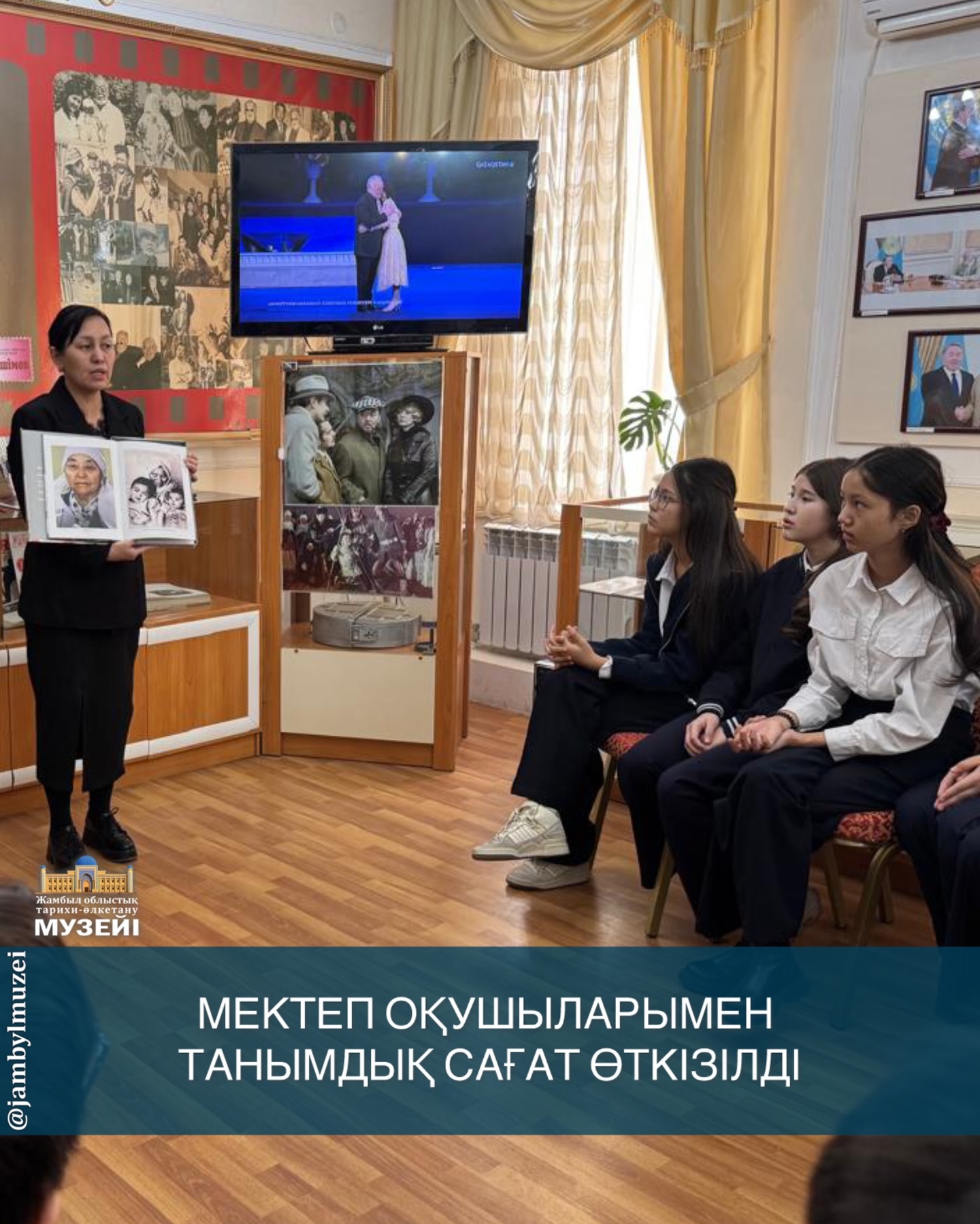 Жамбыл облыстық тарихи-өлкетану музейіне қарасты А.Әшімов шығармашылық орталығында мектеп оқушыларына арналған танымдық сағат ұйымдастырылды.